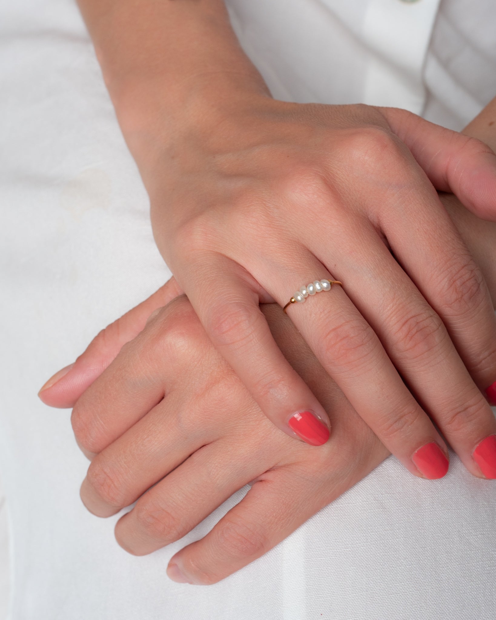 Hübscher vergoldeter Ring mit kleinen Süßwasserperlen von Fleurs des Prés.