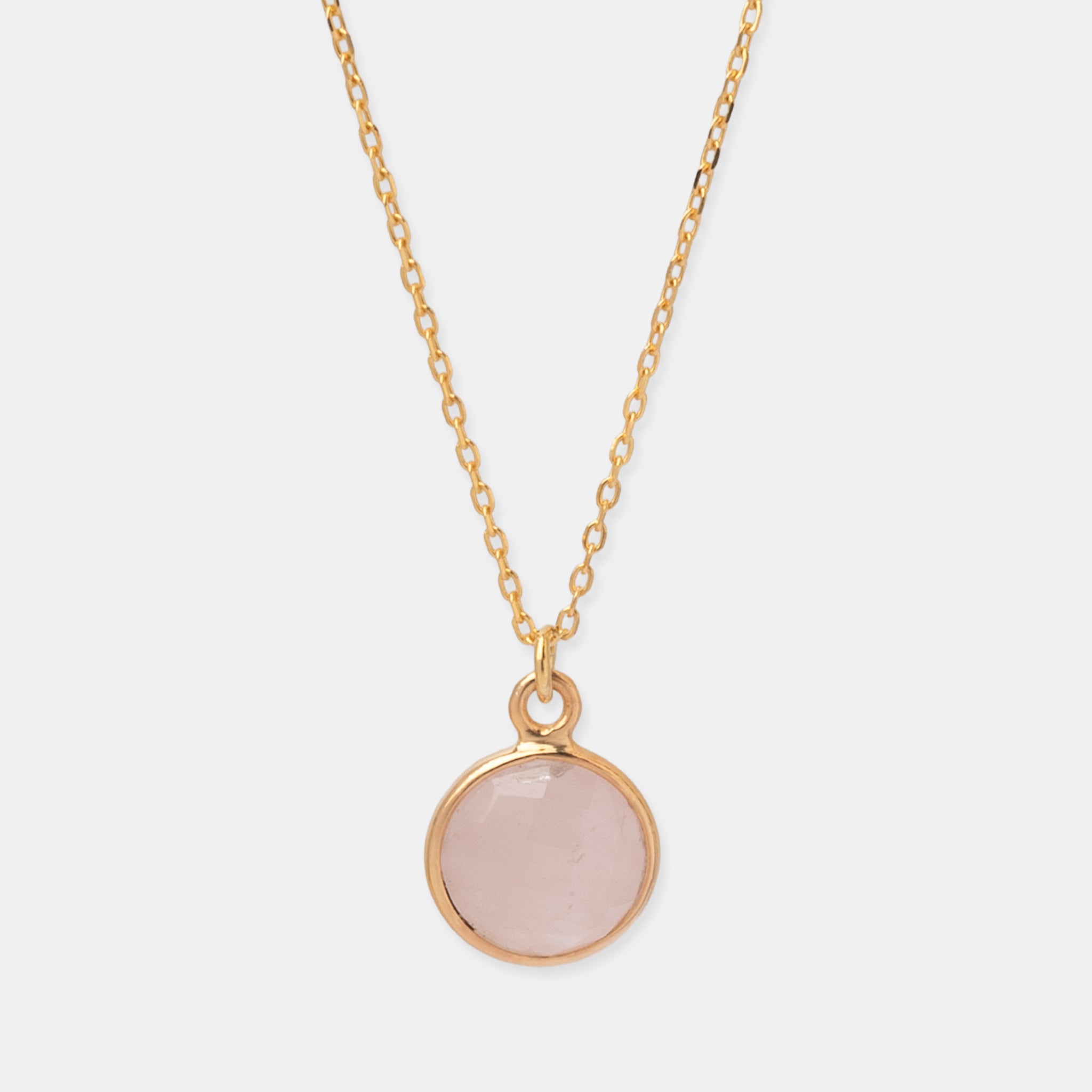 Halskette Eloise von Fleurs des Prés. Handgefertigte Halskette mit Rosenquarz im runden Facettenschliff, zart gefasst in 18 Karat vergoldetem Silber.
