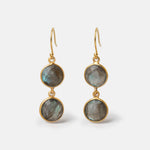 Vergoldete Ohrhänger Eloise von Fleurs des Prés mit zwei Steinen aus Labradorit.
