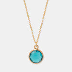 Halskette Eloise von Fleurs des Prés. Handgefertigte Halskette mit türkis-blauem Topaz Quarz im runden Facettenschliff, zart gefasst in 18 Karat vergoldetem Silber.