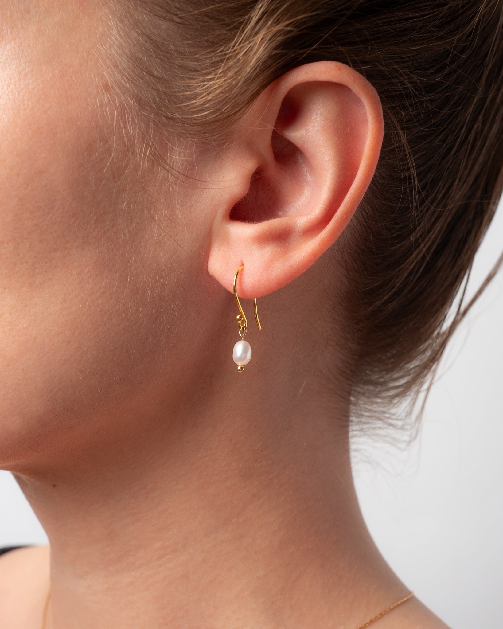 Einfache vergoldete Ohrhänger mit echten Süßwasserperlen von Fleurs des Prés.