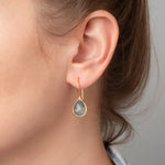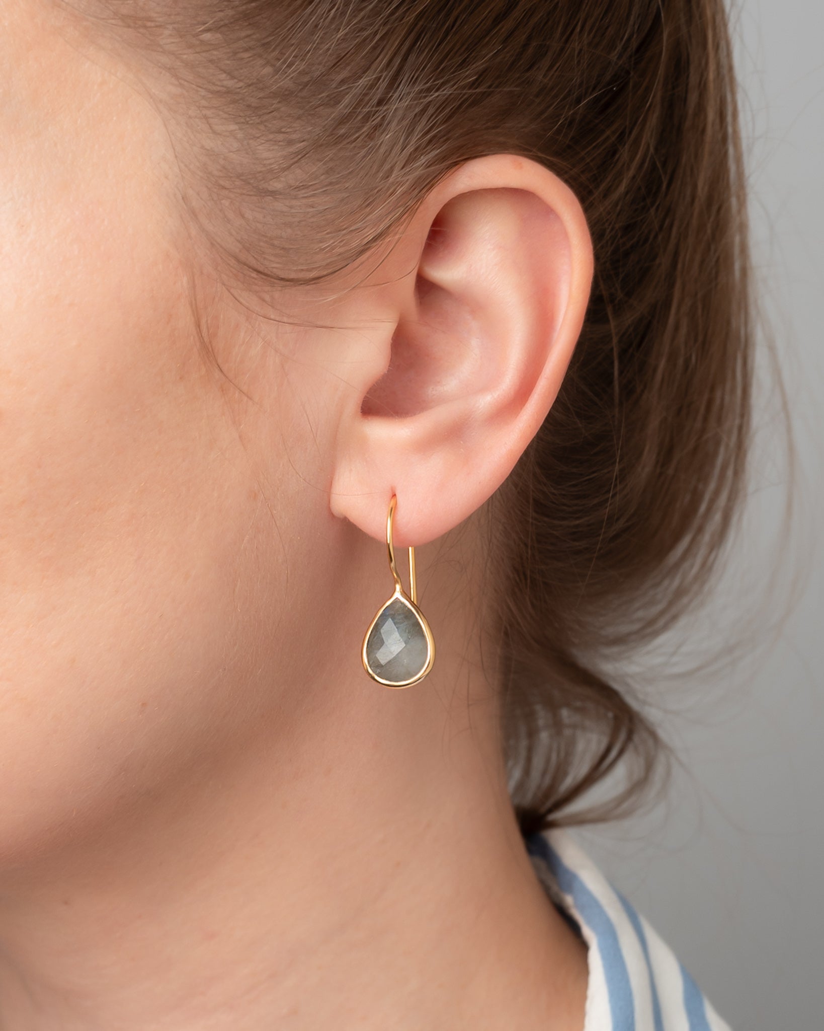 Filigrane Ohrhänger Lisette mit facettiertem Labradorit in Tropfenform. Der Labradorit hat eine graue Grundfarbe und je nach Lichteinfall wunderschöne blaue Reflexionen.Er strahlt eine geheimnisvolle Eleganz aus lässt sich sehr vielseitig mit neutralen Farben, aber auch mit hellen und dunklen Blautönen kombinieren.